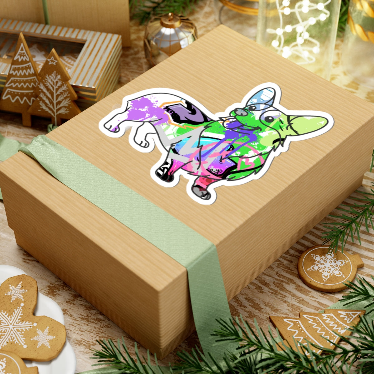 A vibrant graffiti street art inspired digital illustration of a Corgi, perfect for adding a pop of color and personality to laptops, journals, and windows. Ideal for adults who love street art and unique designs. Relevant for dog lovers, art enthusiasts, and those looking to personalize their belongings. Great for gifting on birthdays, holidays, and special occasions.
