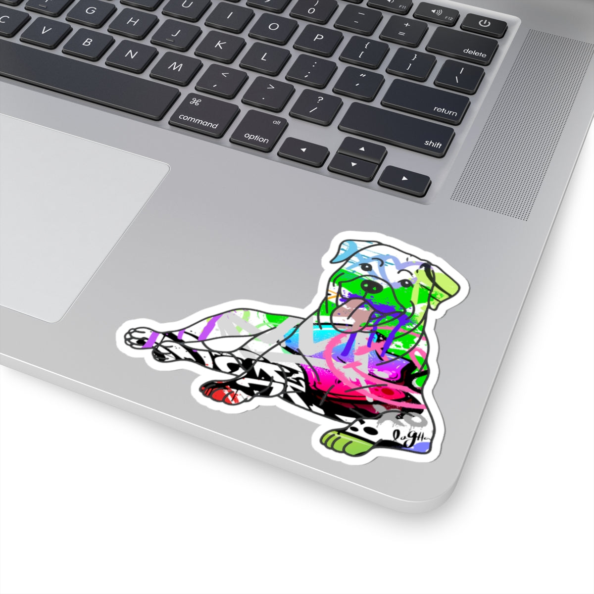 Vibrant graffiti street art inspired Rottweiler digital illustration sticker, perfect for laptops, journals, and windows. Gives a cool and edgy vibe, ideal for adults looking to add unique flair to their belongings. Relevant for gift-giving during birthdays, holidays, or as a fun treat for yourself.